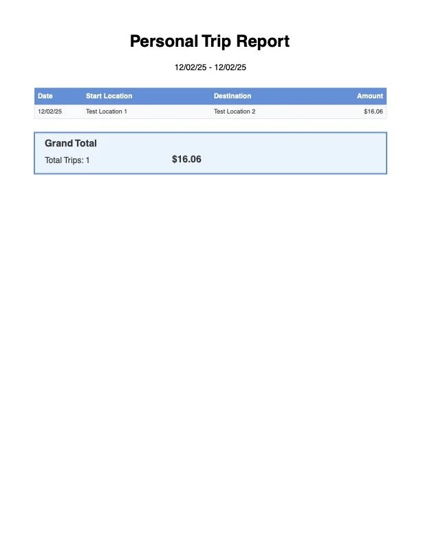 Auto generated work expense report.