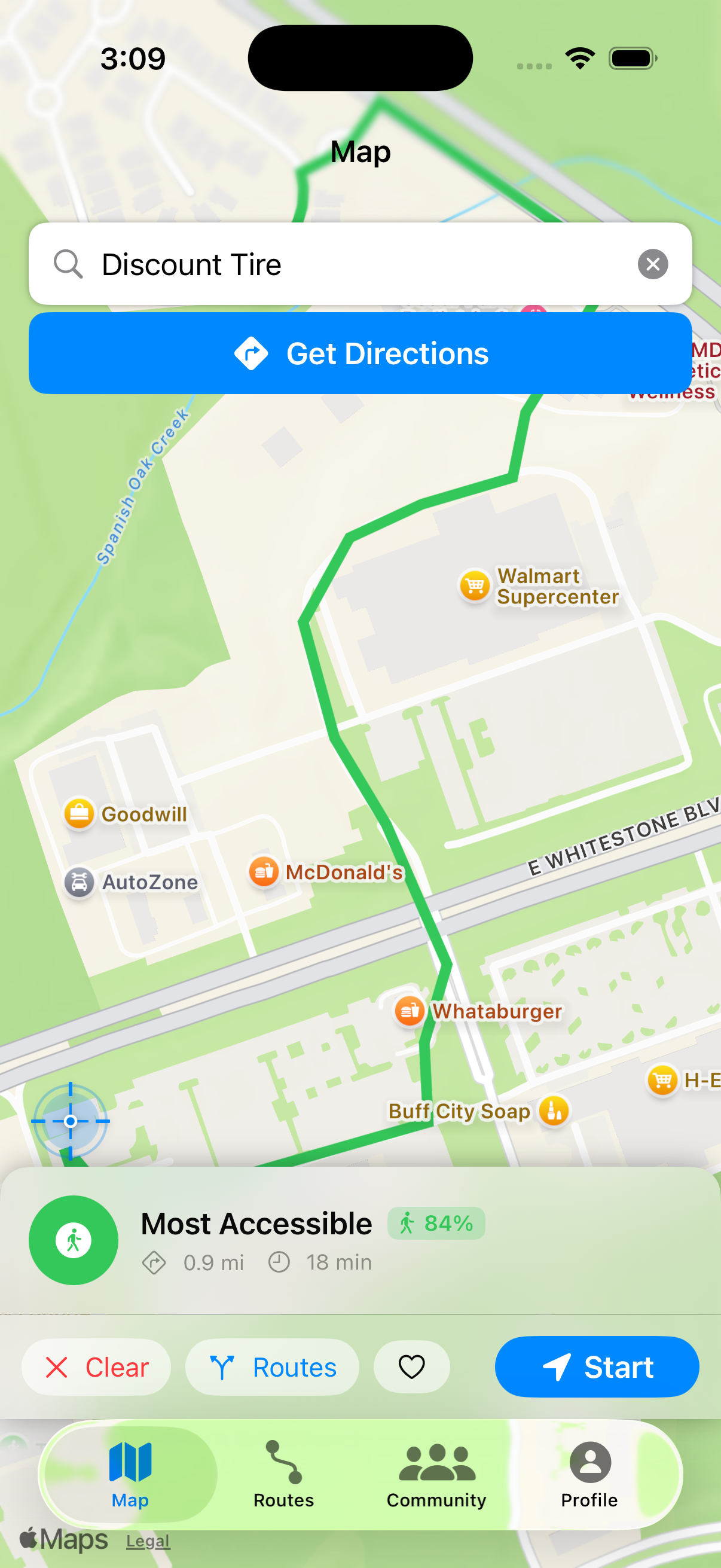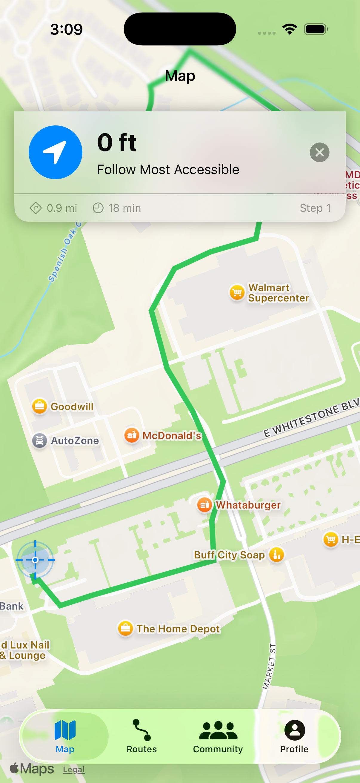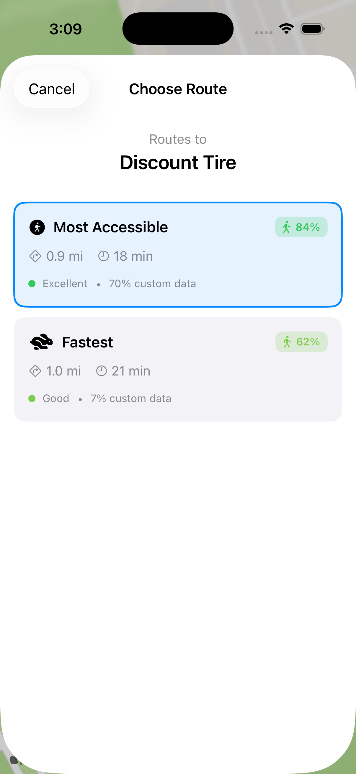 Accessible route now displayed.